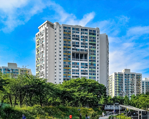 아파트 2,136세대 총 17동 인 이 곳에 에코나라 음식물 폐기물 대형 감량기가 14 대 설치되었습니다.